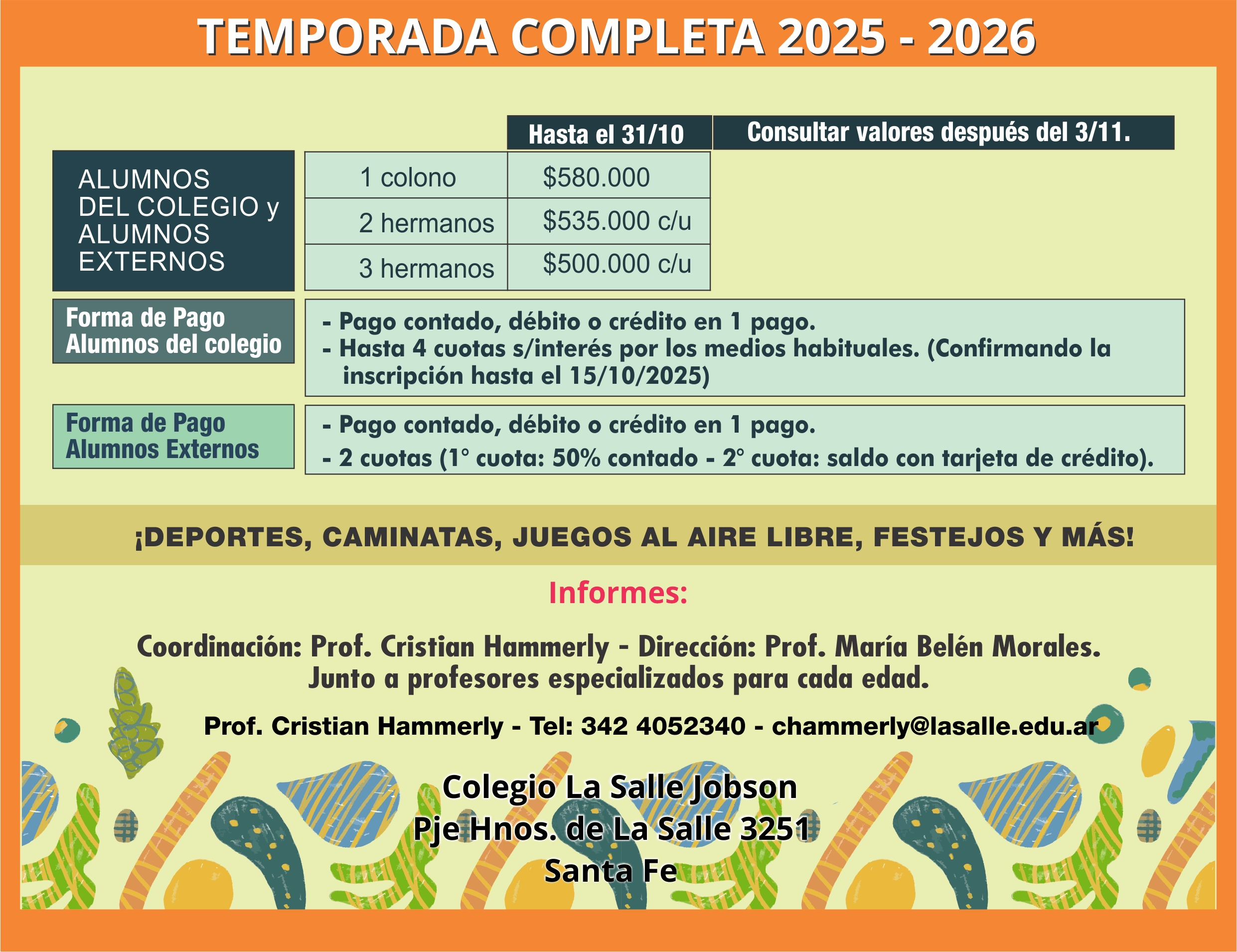 FORMULARIO INSCRIPCIÓN COLONIA DE VACACIONES LA SALLE JOBSON 2025-2026